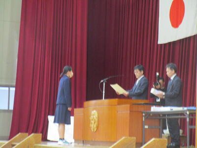 「学校賞」「優秀賞」「特別賞」「皆勤賞」など、多くの生徒がその努力を称えられ、表彰台に上がりました。代表生徒の堂々とした返事と立ち振る舞いからは、3年間の積み重ねに対する自信と誇りが感じられました。