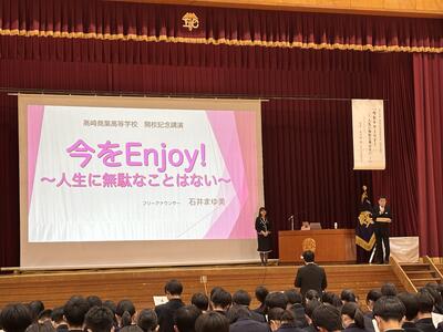 開校記念式典が挙行され、式典後には本校卒業生である石井まゆ美様(フリーアナウンサー)を講師にお迎えし、記念講演を開催いたしました。