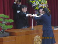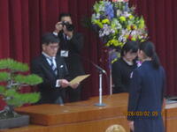 式典では、呼名で卒業生一人ひとりがしっかり返事をし、卒業生総代が校長より卒業証書を授与されました。 その凛々しく堂々とした立ち振る舞いは、この3年間で培った確かな成長を感じさせるものでした。