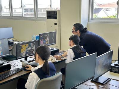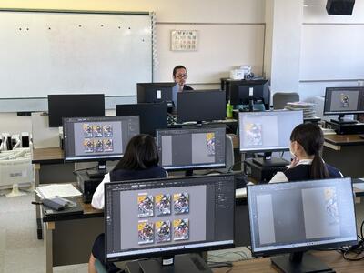 DXハイスクール事業の一つとして、東日本デザイン&コンピュータ専門学校 デザイン学科の根本 剛 先生にご来校いただき,課題研究(広報班)の生徒に対して,illustratorによるポスター作成の指導をしていただきました。高商祭のチラシやポスターづくりに役立てることができそうです。